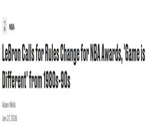 再休一场将无缘评奖!詹姆斯呼吁NBA改规则:如今比赛强度不一样