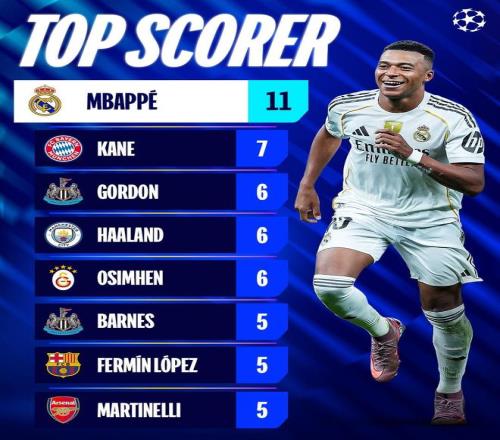 姆巴佩已经攻入11球,由C罗保持的欧冠单赛季进球纪录是17球。如果皇马不踢附加赛且进入决赛,姆巴佩还有8场比赛,如果本轮再度爆发,姆巴佩将更有机会完成对C罗的超越。