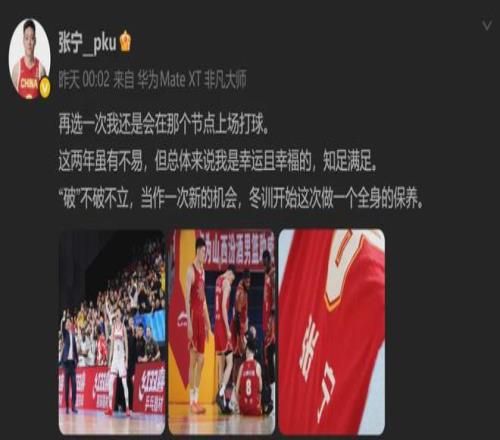 但张宁不这么想:“再选一次我还是会在那个节点上场打球。这两年虽有不易,但总体来说我是幸运且幸福的,知足满足。‘破’不破不立,当作一次新的机会,冬训开始这次做一个全身的保养。”