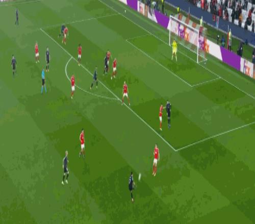 直到第30分钟,皇马才率先打破僵局。阿森西奥右路送出一脚极具穿透力的斜45度传中,姆巴佩反越位启动,高高跃起头球攻门得手,皇马1-0本菲卡。这是姆巴佩本赛季俱乐部加国家队的第40球,他也成为首位连续6个赛季进球40+的法国球员。