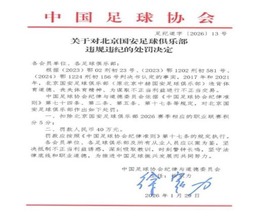 被扣5分+罚40万!国安官微硬刚足协:人在做天在看,球迷支持上诉