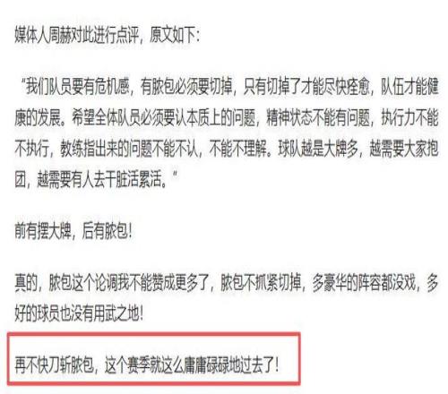 他在总结完失利的原因之后,紧接着就说到了队伍存在的“脓包”问题必须切除。
