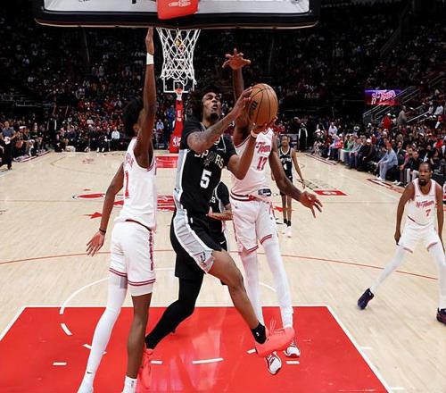 本场比赛中,马刺的先发得分后卫斯蒂芬-卡斯尔(Stephon Castle)也算是摆脱了之前几场比赛的糟糕状态。卡斯尔全场出场32分44秒,投篮12中7,三分线外2中1,罚球3中1,得到了16分5篮板6助攻2抢断的全面数据,还有2次失误和3次犯规,正负值为+3。卡斯尔在进攻端效率稳定,他的突破能力和终结能力相当不错,他也通过各种方式得到了不少分数,他也没有太过执拗,没有进行太多不合理的投篮,他还展现出了自己的传球能力和组织能力,在进攻端的贡献度非常全面。不仅如此,卡斯尔在防守端也是保持了极高的强度和专注度,证明了自己是一名非常优秀的防守者。总体来看,卡斯尔在本场比赛中的表现非常不错,他也为球队的胜利提供了不小的支持。