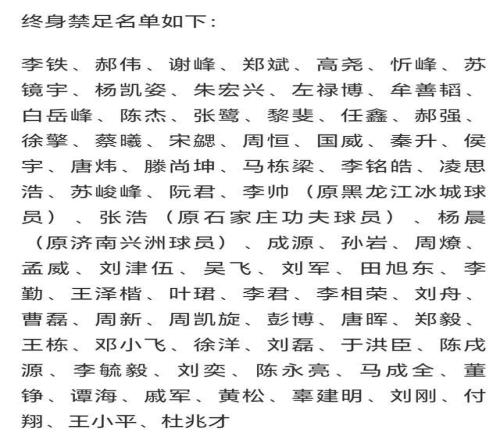73名终身禁足者中,既有陈戌源、杜兆才等足协高层,也有李铁、郝伟等知名教练,覆盖管理、教练、球员、裁判的中国足球全链条!