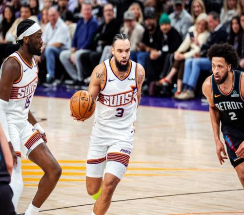 这一个比赛日,太阳坐镇主场,迎来了东部第一底特律活塞的挑战,本场比赛狄龙在布克缺阵的情况下,扛起了球队的进攻大旗,率领残阵的太阳一度建立起了21分的领先,最终以114-96掀翻了东部第一的活塞。