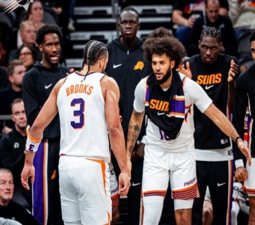后半段布鲁克斯带领古德温和马威继续上分,布鲁克斯命中三分+罚球连续打进后,太阳最多领先19分!哈里斯三分止血,康宁汉姆造杀伤,半场太阳72-56领先活塞,布鲁克斯独砍24分!进入下半场,活塞开始发力,康宁汉姆上篮,奥萨尔扣篮,杜伦继续点名马威。太阳进攻没起色,哈里斯再中追身三分球。此后康宁汉姆连续单打,活塞一路追到只差3分!危急时刻阿伦三分止血,此后布鲁克斯撤步三分再中,这出手姿势和哈登一模一样!布鲁克斯继续军训霍兰,带队重新拉开分差。