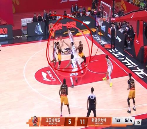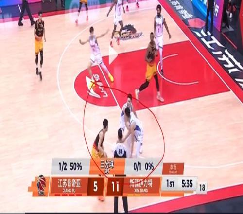 阵地战防守,庞峥麟也有出色表现。这一球庞峥麟发现队友补防后漏人,自己又去帮队友协防卡位,并且协防成功,让新疆球员吴冠希接球失误,说明他拥有不错的团队防守意识