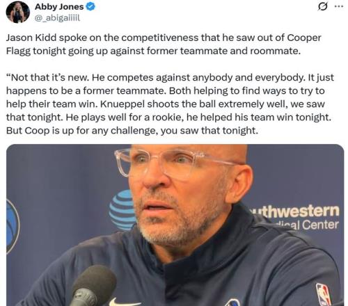 独行侠主帅基德也对弗拉格送上称赞:“弗拉格从来都不在意数据,只在乎比赛胜负,这是他的本色,从来不会纠结于技术统计,所以他成为冠军只是时间问题,并且相信很快就能实现这一目标。”