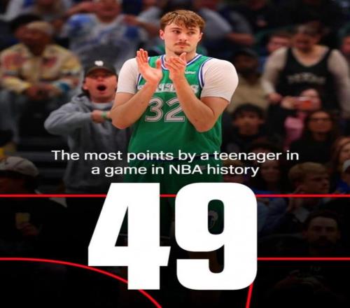 第五项:单场49分创造独行侠队史新秀单场得分纪录。