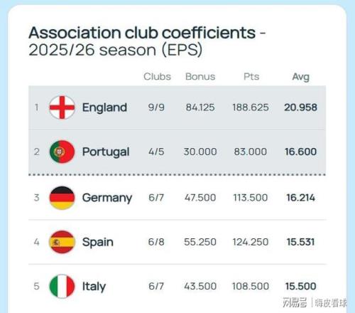 显然,英超6队闯进前八名,另外3队,纽卡斯尔第12名,诺丁汉森林第13名,水晶宫第10名,从而导致9支球队获得的奖励积分相当高。因此,受益于新规则,英超得以进一步扩大领先优势。