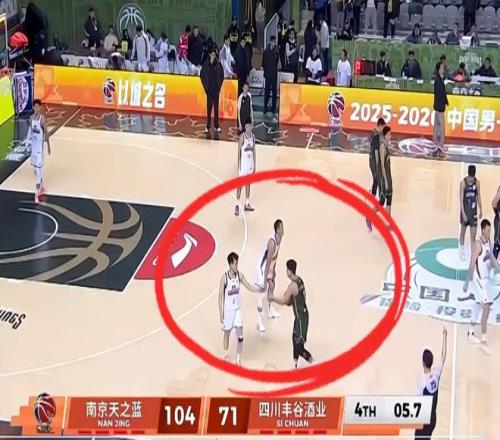 左朕年拿球后在无人盯防的情况下瞄着篮筐又投了一记三分球,这让南京同曦球员马鑫鑫与赵柏清很不满意,二人与左朕年发生了肢体冲突,马鑫鑫还被左朕年推翻在地,不过说实话,马鑫鑫多少有一些表演的成分。