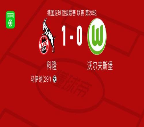 科隆10沃尔夫斯堡,马伊纳打进全场唯一进球 懂球帝 2026-01-31 07:02:19 北京时间1月31日德国足球顶级联赛 联赛 第20轮,科隆主场对阵沃尔夫斯堡。科隆马伊纳破门。最终比分科隆 1-0 沃尔夫斯堡。精彩瞬间第29分钟,科隆球员克劳斯助攻马伊纳打入一球。球队阵容技术统计德甲免费观看_马伊纳免费观看_科隆队免费观看_德甲高清在线_马伊纳高清在线_科隆队高清在线 德甲 马伊纳 科隆队 沃尔夫斯堡队 上一篇: 征途国际:法兰克福宣布任命利物浦和曼城前球员里埃拉为新任主教练_德甲直播 下一篇: 征途国际:克里豪建议桑乔考虑德甲中游俱乐部,小贝林并未脚踏实地