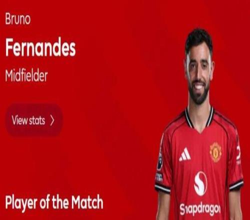 在争议判罚的阴影下,B费的个人表现依然耀眼。本场比赛他点射建功,并造成对手乌龙,赛后当选英超官方评选的全场最佳球员。