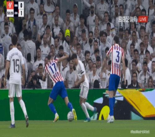 第50分钟,汉茨科铲倒迪亚斯,皇马获得点球。