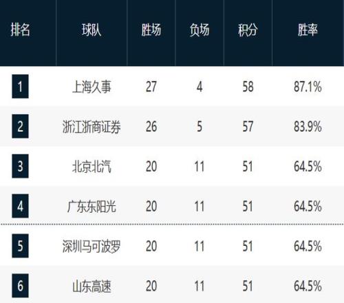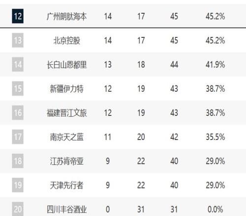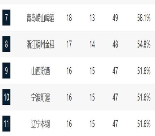 青岛和浙江排在第七和第八,他们现在的排名不上不下。而且这轮他们两个还直面对决,最终浙江赢了青岛,这算是卡位战了。