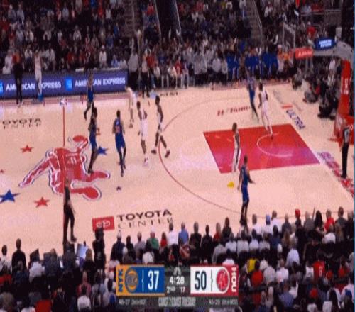 半场结束前,火箭再度打出得分小高潮,以63-50领先尼克斯。