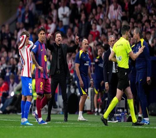 争议巴萨中卫蹬踏染红却获改判!西蒙尼暴怒挥手,马竞官方质问
