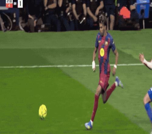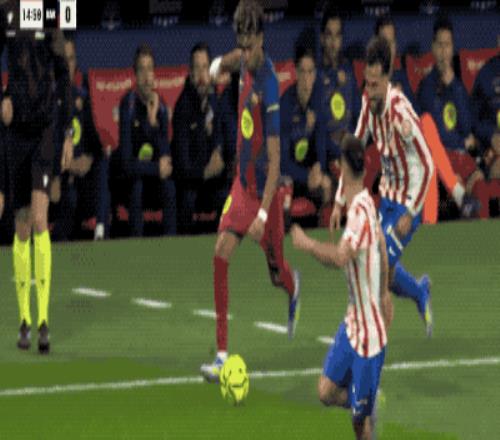 上半场补时阶段,亚马尔快速突破准备进入禁区,尼科·冈萨雷斯倒地飞铲,吃到第二张黄牌,被罚下场。