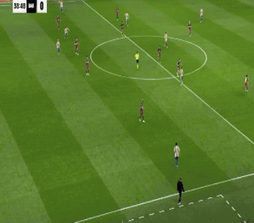 上半场补时阶段,接到加西亚的长传,亚马尔快速突破,在进入禁区前,尼科·冈萨雷斯倒地放铲,吃到第二张黄牌被罚下场。