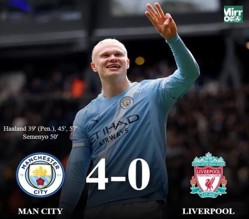 疯狂40!曼城赛季三杀利物浦!创89年历史纪录,哈兰德帽子戏法