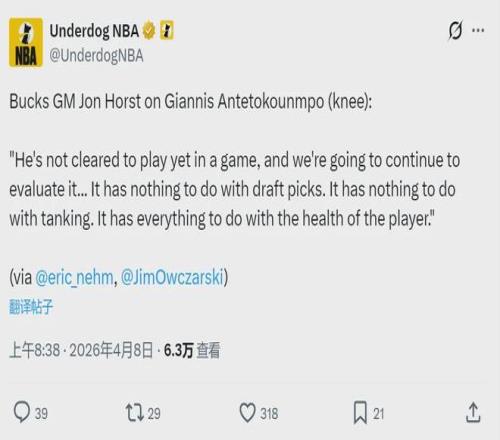 一位雄鹿内部人士告诉Shams:“问题关键在于,字母哥一天不想留在这里了。当你最好的球员脚踏两只船时,你是赢不了比赛的!”雄鹿总经理霍斯特今天接受采访时回应:“不让字母哥上场只是因为健康问题,和摆烂或选秀权无关!”