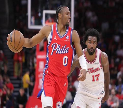 Adem Bona对位国家队队友申京还算体面,但火箭首节35分的气势根本压不住。Nick Nurse第二节甚至派上Dominick Barlow打中锋——Andre Drummond的缺席让内线轮换捉襟见肘。现在43胜37负的76人,只能祈祷猛龙明天别赢热火。