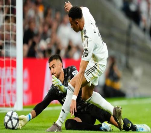 比赛刚刚开始8分钟,贝林厄姆在禁区内获得机会,他转身起脚射门,结果被身前的防守球员挡了出去。2分钟后,姆巴佩在禁区右侧零角度射门。皮球在门线上被解围了出去,有些可惜。第12分钟,欧纳希大力抽射,打近角。门将卢宁单掌把球扑出,化解险情。6分钟后,维尼修斯在禁区内低射近角。门将封死了角度,轻松把球没收。