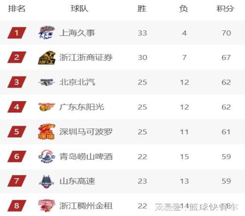 附:CBA积分榜最新排名