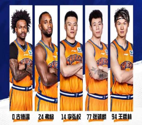 上海久事男篮今日首发阵容:古德温、弗格、李弘权、张镇麟和王哲林。