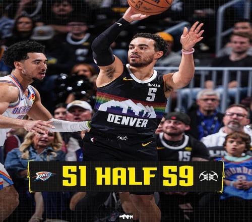 本赛季前三次交锋雷霆均战胜掘金,本场雷霆轮休亚历山大、霍姆格伦、杰伦与哈尔滕施泰因等10位球员,掘金轮休约基奇与穆雷、戈登等7位球员。双方均是派出残阵出战,首节开局掘金8-4领先,并在之后缠斗至16-14领先。掘金打出一波12-2攻势扩大12分优势,雷霆回敬一波11-6攻势追分,首节结束掘金34-27领先雷霆。