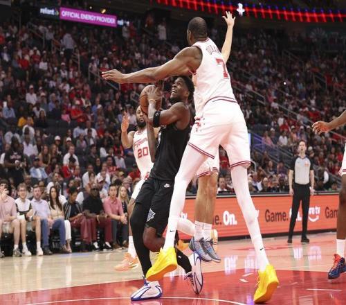 2、阿门成为队史自2000年以来第四位单场0三分进球砍下40+的球员,此前三位是姚明(2次)、斯科拉、威少。