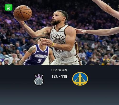 北京时间4月11日NBA 常规赛,萨克拉门托国王对阵金州勇士。上半场勇士库里表现不佳仅得3分,半场国王63-51勇士,第三节勇士轰出38-19反超7分,末节前半节国王追平比分,而勇士库里提前打卡休息,国王完成逆转,最终国王124-118勇士。
