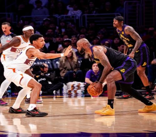 詹姆斯28+6+12+4比肩三大传奇,双枪缺阵新援19分,湖人大胜太阳