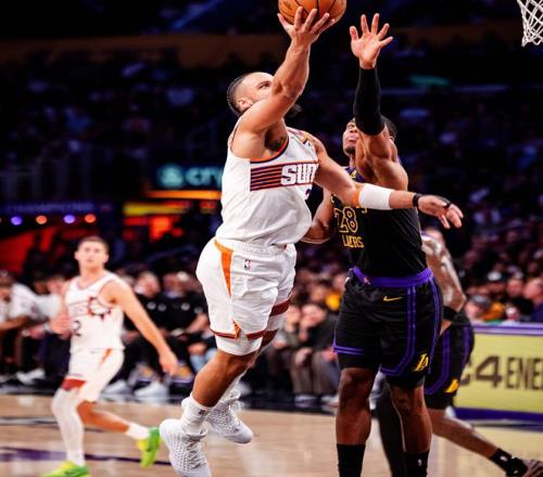此役是湖人和太阳的赛季第五次直接对话,前四次碰面时,太阳取得了3胜1负的战绩,不过这一次狭路相逢,双子星布克和杰伦格林都因伤无法出战,这也让勒布朗詹姆斯单核带队的湖人,看到了复仇的曙光。