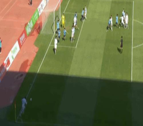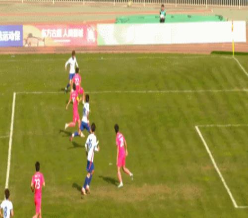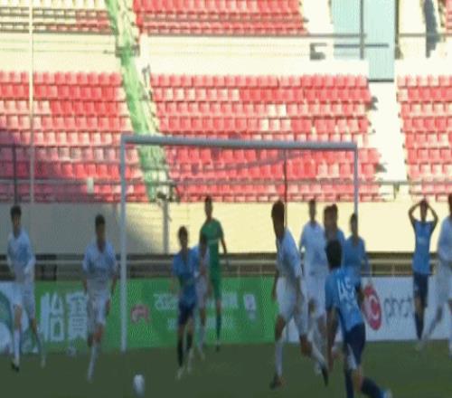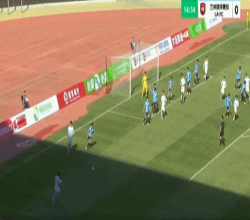 第16分钟,张俊哲门前将球撞进球门,兰州陇原竞技1-0大连英博B队