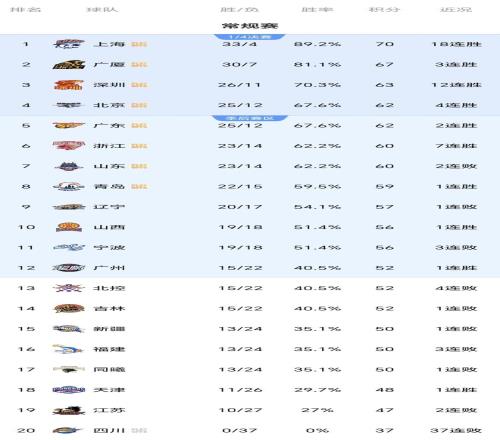 CBA悲喜两重天:深圳12连胜稳居前四,四川遭37连败,附最新排名