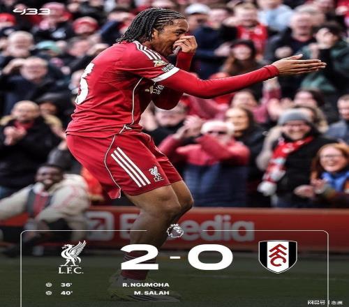 利物浦主场2-0击败富勒姆,终结各项赛事3连败,先赛领先身后的切尔西4分。恩古莫哈右脚精彩兜射破门,加克波助攻萨拉赫再下一城,柯蒂斯-琼斯内收肌受伤无奈伤退。