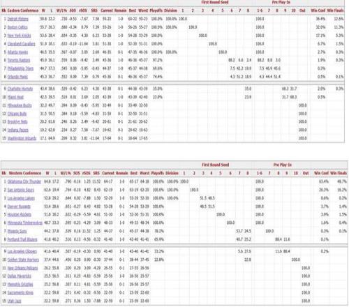 所以这一概率并非是对于湖人的低估,而是直观展现出伤病对于这支湖人队巨大的影响,如果东契奇与里夫斯能够在季后赛中回来,相信湖人队的概率会迅速回到正常水平,至少将杀入前八行列。