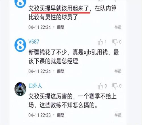 从艾孜麦提这件事看来,征途国际 的教练不应该瞧不起队员,而应是敢于使用,坚持使用,他总有一天找到最佳状态。姜正秀就是这样知人善任的好教练。新疆球迷说,“扶正姜正秀带的不错,说实话他是最了解队员的那个人”、“艾孜买提这么厉害的,一个赛季不给上场,这些教练不知怎么搞的”、“艾孜买提早就该用起来了,在队内算比较有灵性的球员了”。诸位,看到艾孜麦提从无球可打,到彻底爆发,你有怎样的评论?