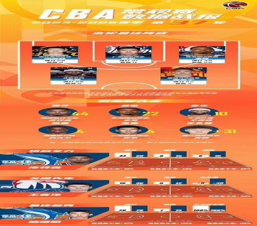 CBA官宣常规赛第37轮最佳阵容,胡金秋13中11高效28+8率广厦逆转入选,徐昕21+11+4帽与米奇30+22+6入选,还有杰曼和贺希宁也入选。