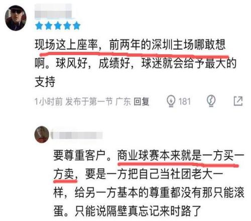 不少球迷感慨道:“不得不说,老贺带起了深圳主场的上座率啊”、“现在这上座率,前两年的深圳主场哪敢想啊。球风好,成绩好,球迷就会给予最大的支持”。