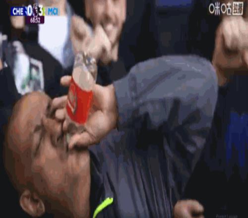 在多库为曼城将比分扩大至3-0后,看台上的一位镜头感拉满的曼城球迷拿起印有阿森纳队徽的瓶子“对瓶吹”,长时间占据了转播镜头。