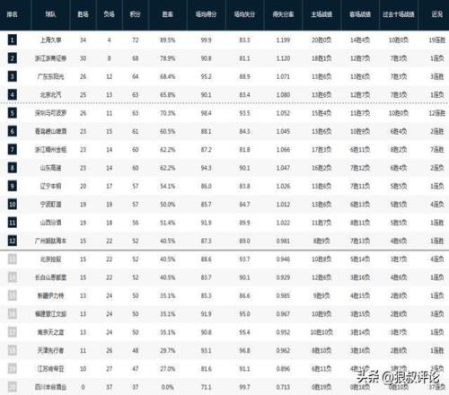 CBA最新排名:上海锁定常规赛冠军广东攻克广厦魔鬼主场反超北京