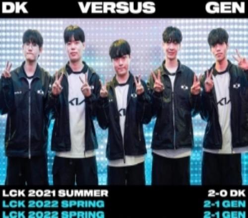 赛事官方分享DK两次击败GEN之间历次战绩,配文如下: