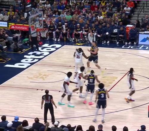 约基奇把2米08的中锋晃成木桩,然后随手一抛