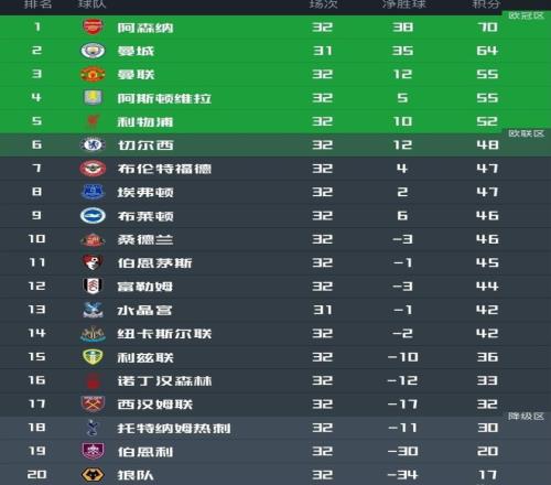 惨烈英超第6距第14仅6分!欧冠资格最新形势曼联领先切尔西7分