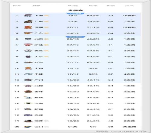 随着本轮比赛的结束,CBA最新排名又变了: