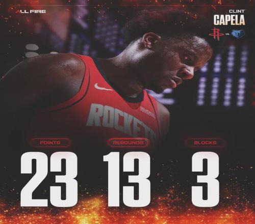全场比赛,卡佩拉在23分钟的出场时间里11投9中,高效率贡献23分13篮板3封盖的数据,这样的表现确实是久违了。