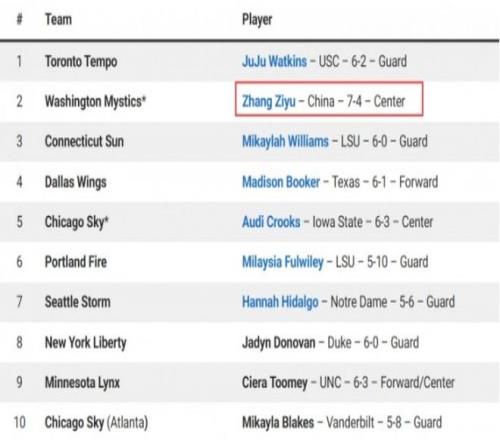 中国巨人!张子宇2027年将获WNBA选秀资格知名网站预测成榜眼