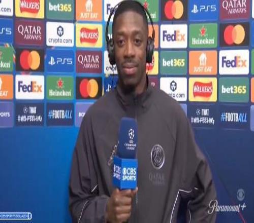 欧冠1/4决赛次回合,巴黎客场2-0战胜利物浦,两回合总比分4-0淘汰利物浦。登贝莱赛后接受了CBS体育的采访。